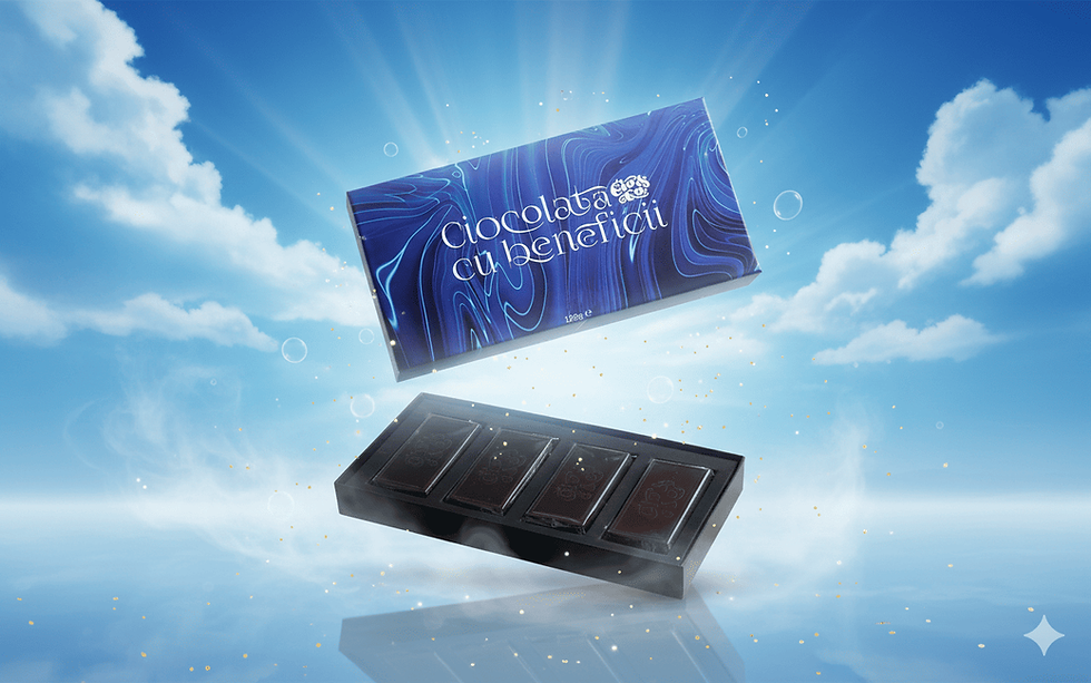 Ciocolată cu Beneficii, este pentru aceia dintre noi ce au nevoie de culoare într-o lume monotonă, împachetată într-o cutie care de altfel amintește de un set de pictură, și ingrediente cu beneficii pentru corp, minte și suflet.